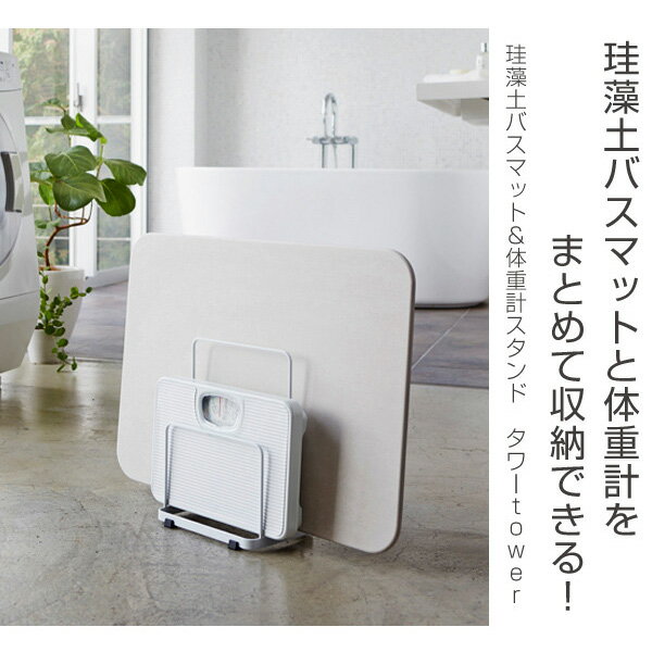 珪藻土バスマット&体重計スタンド タワー tower ( 体重計スタンド 珪藻土バスマット 収納 珪藻土 速乾 バスマット スタンド 速乾マット 珪藻土マット 珪藻土バスマット立て 体重計立て )
