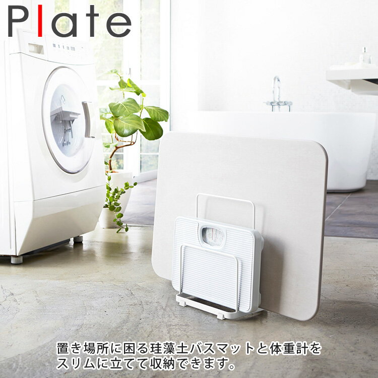 【送料無料】珪藻土バスマット&体重計スタンド プレート ホワイト【 バスマットホルダー 珪藻土マット 足ふきマット バスマット用 バスマット立て 体重計スタンド 収納 ヘルスメーター収納 体重計 体重計ホルダー 】LF570B12b000[yama570] [bathlan]