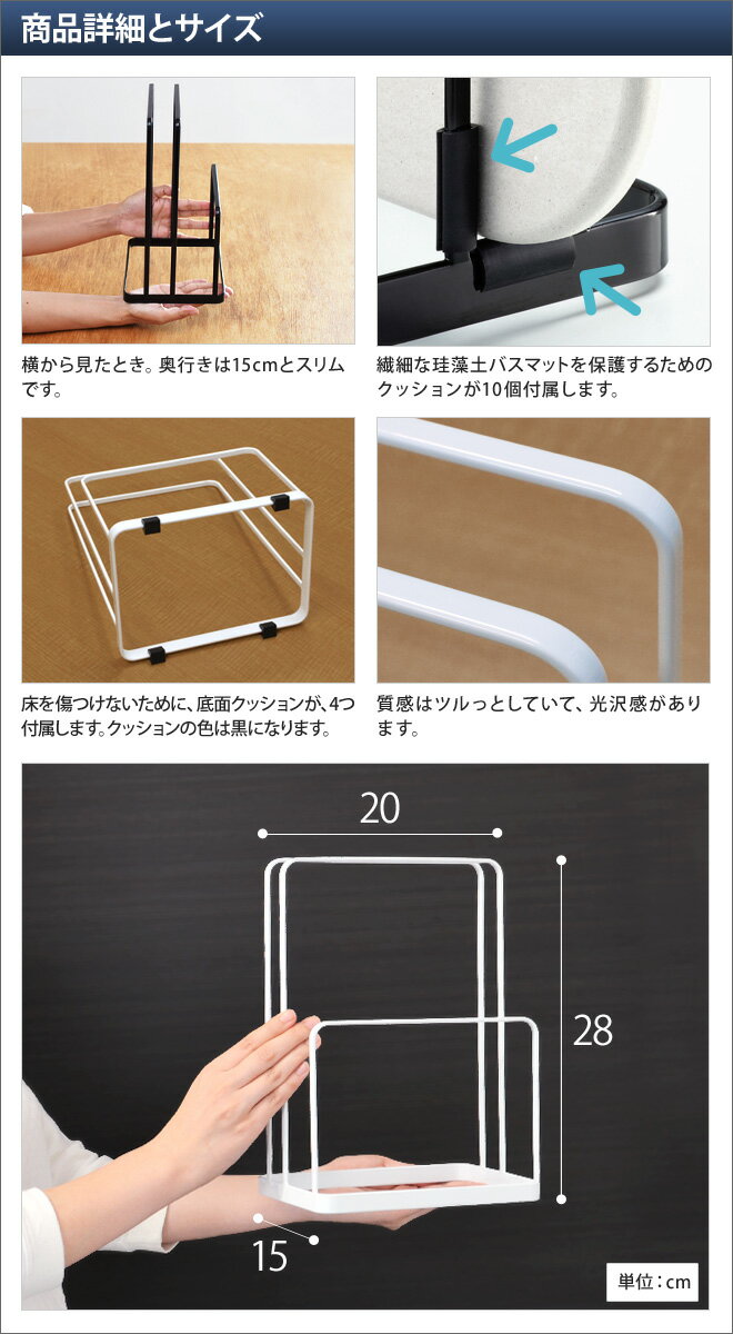 でも珪藻土バスマット用にクッションが10個付属し、立てかけるときも安心。