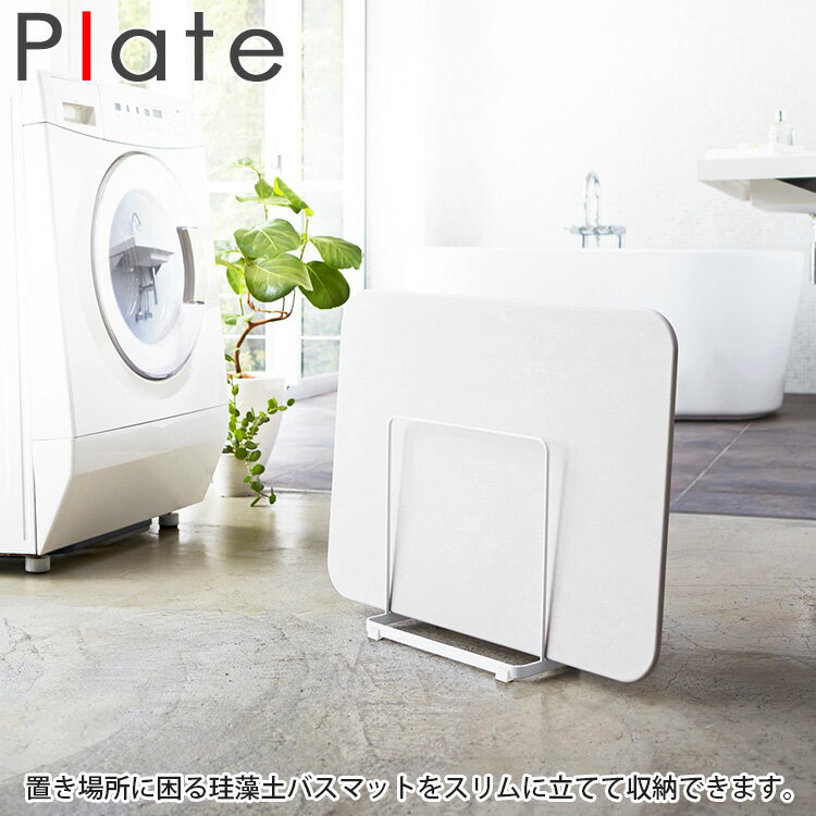 【 送料無料 】珪藻土バスマットスタンド プレート ホワイト【 バスマットホルダー 珪藻土マット 足ふきマット バスマット用 バスマット立て 体重計スタンド 収納 ヘルスメーター収納 体重計 体重計ホルダー 】LF570B12b000[yama570] [bathlan][ 山崎実業 ]